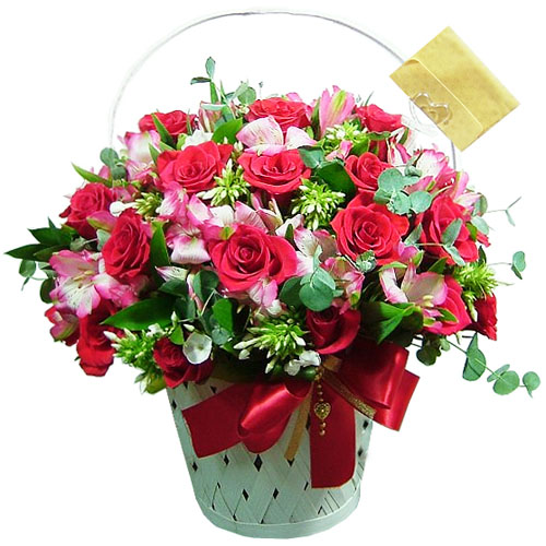 정열적인 사랑을 뜻하는 빨간장미와 계절소재가 어우러진 꽃바구니입니다! ?꽃으로 사랑을 전하세요!!?