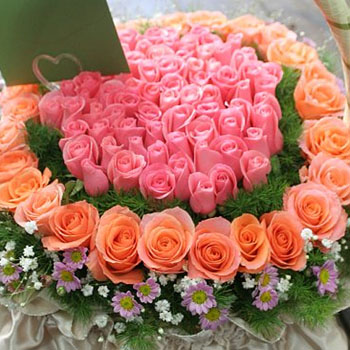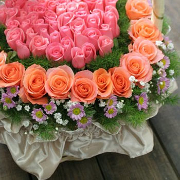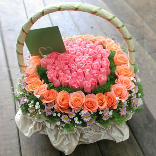 핑크톤의 화사한 유색장미100송이 바구니입니다. 고급스러운 포장으로 더욱 인기있는 제품입니다.